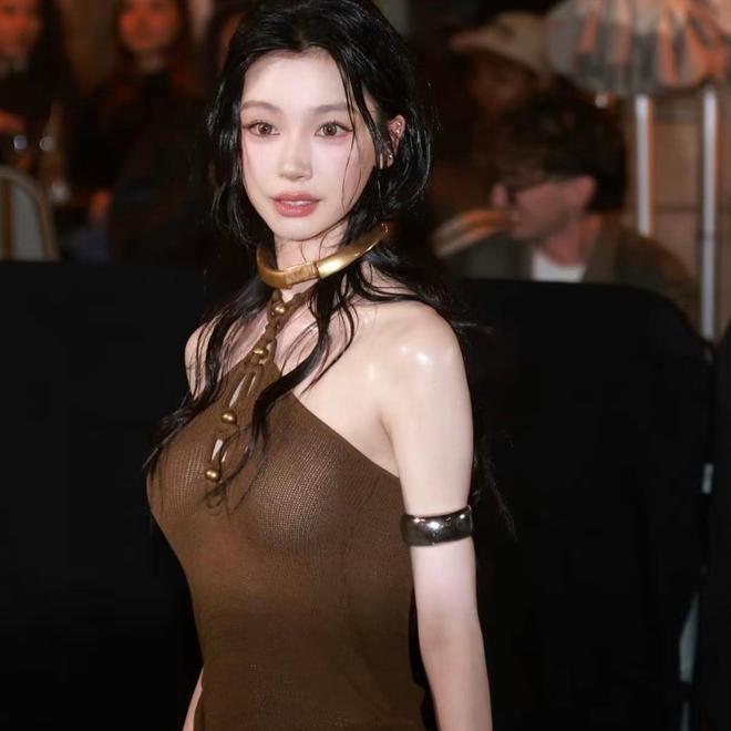 网友调侃说这打底像“光腿神器穿上半身”,脖子上那层肉纱更多余,不仅没修饰效果,还把脖子分成了两个颜色,纯属画蛇添足。