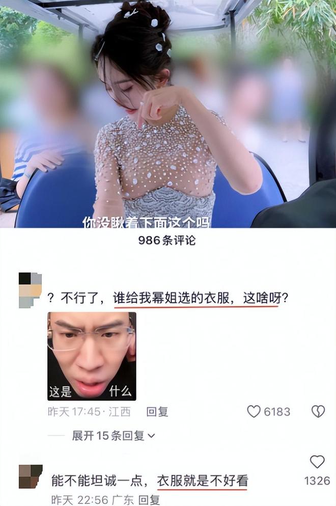 那套裙子设计得特别“反人类”,腰封勒得特别紧,杨幂已经够瘦了,可背部还是被挤出了好几层肉。