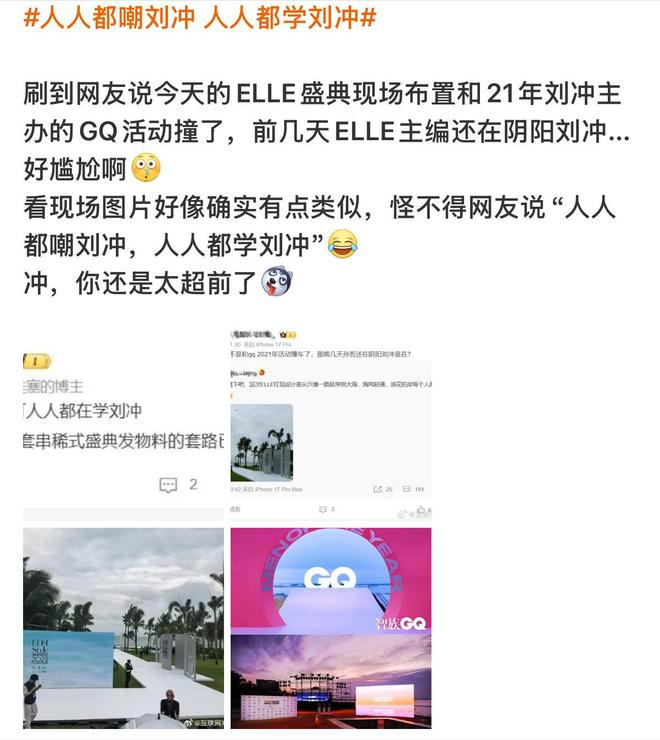 ELLE盛典选在海边,场地布置刚曝光就有人说眼熟,后来才发现和2021年刘冲办的GQ海边活动撞款。