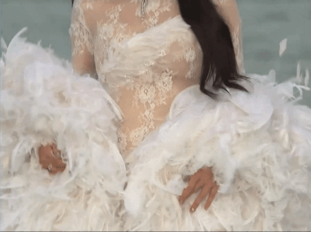 更有意思的是,好多明星还不约而同选了“透视装”,海风一吹,衣服要么贴在身上要么飘起来,好好的设计完全走样,看着又好笑又尴尬,彻底没了原本的美感。